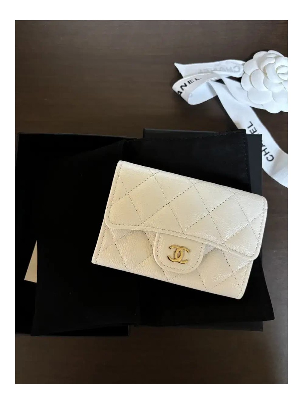 • 샤넬 클래식 24년 신상 카드지갑 똑딱이 금장 화이트