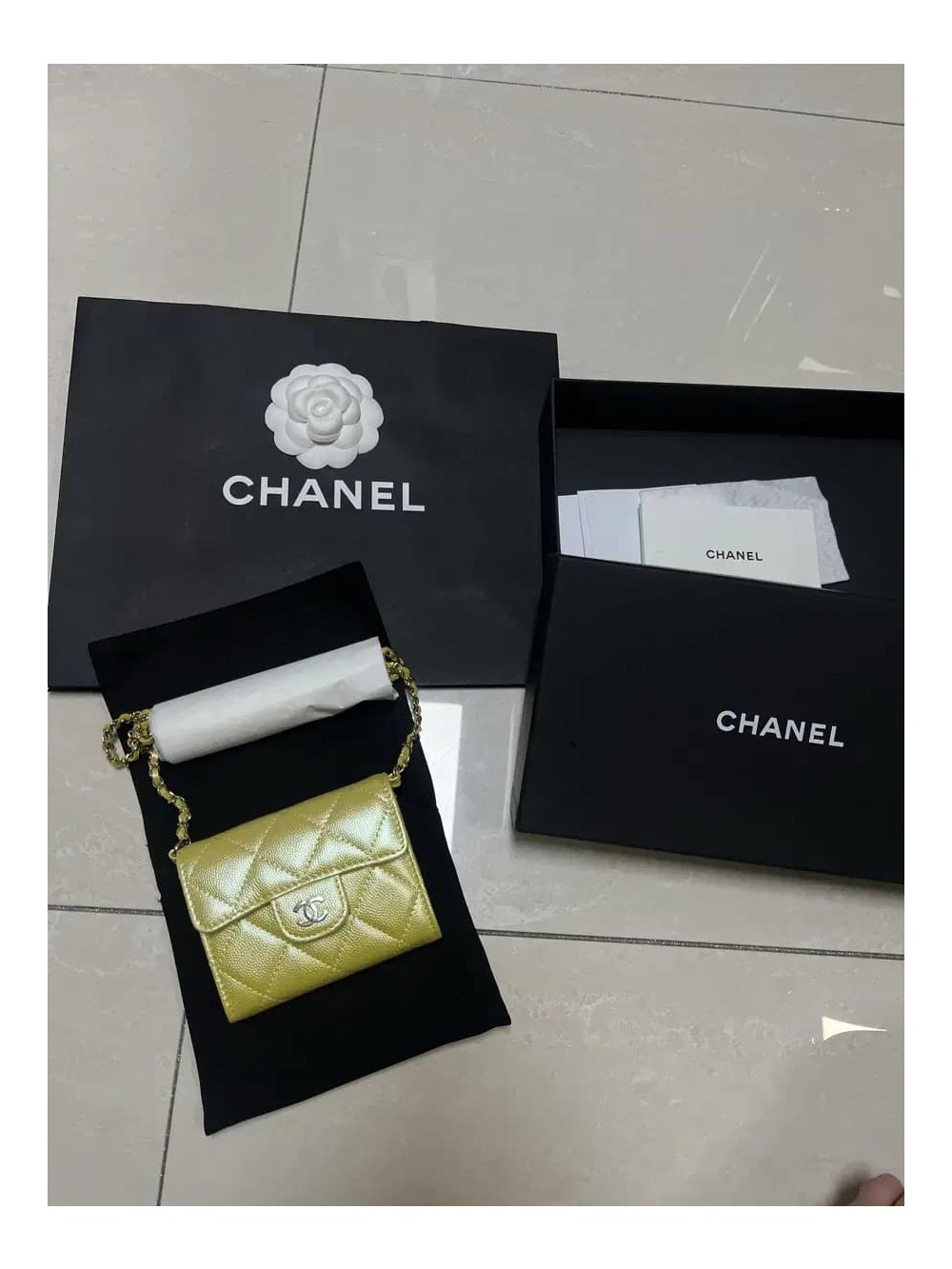 샤넬 클래식 캐비어 옐로우 체인 지갑 woc